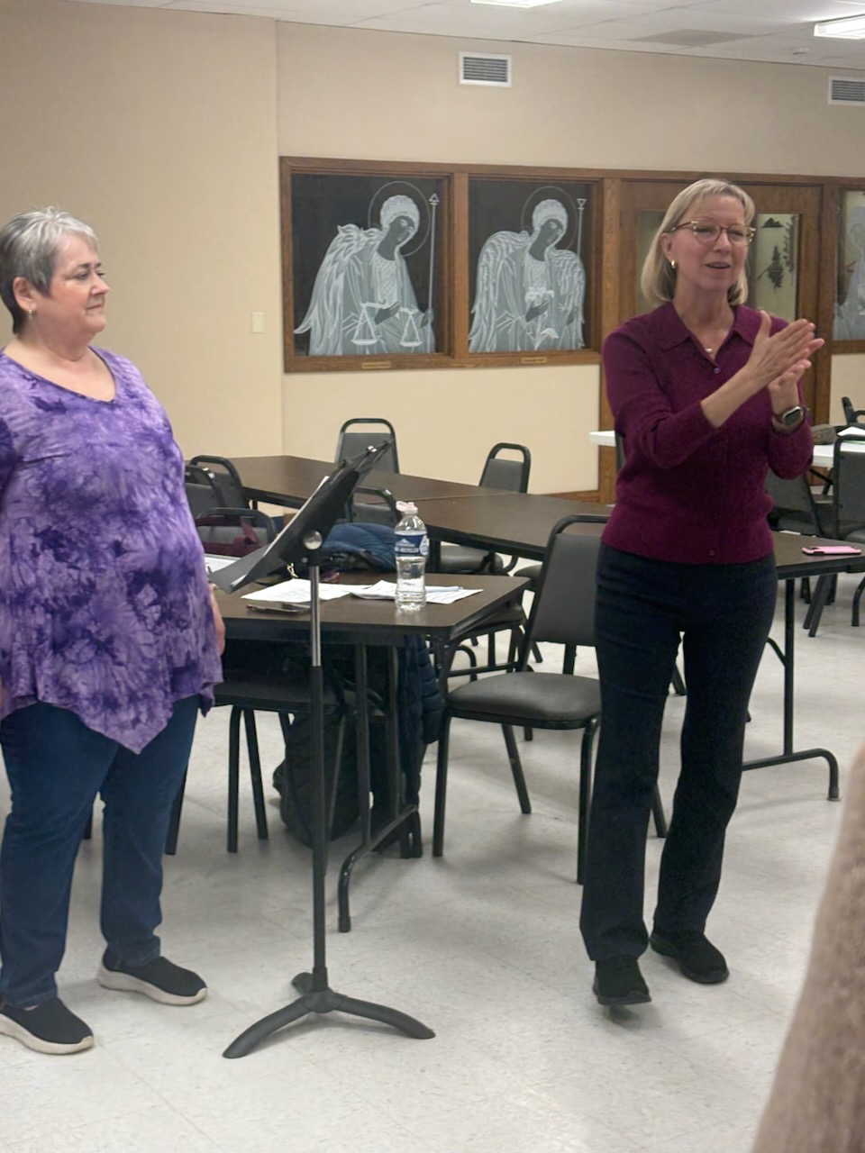 At last night's rehearsal we welcomed Molly Huffman, director of One Voice Indy, to coach us on vocal production. Molly's suggestions and feedback gave noticeable sound improvements, and we look forward to continuing to practice the techniques we learned.